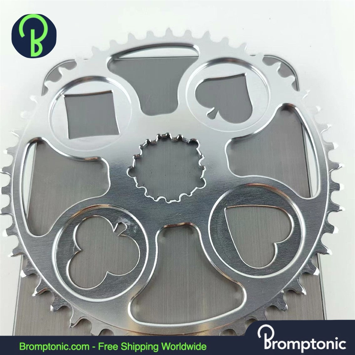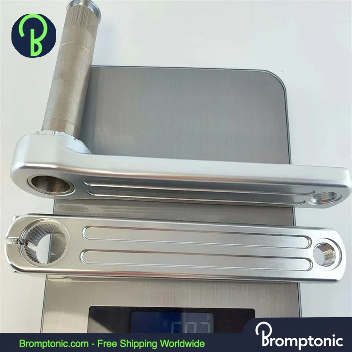 Enhance your Brompton bike's performance and aesthetics with our meticulously crafted Aluminum Alloy Polished Silver Chainring Crankset. Available in 48T and 50T options, this crankset is designed to offer both style and durability.