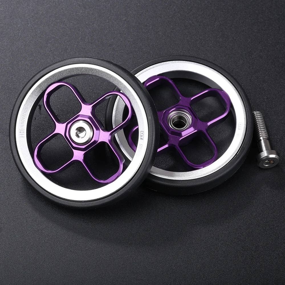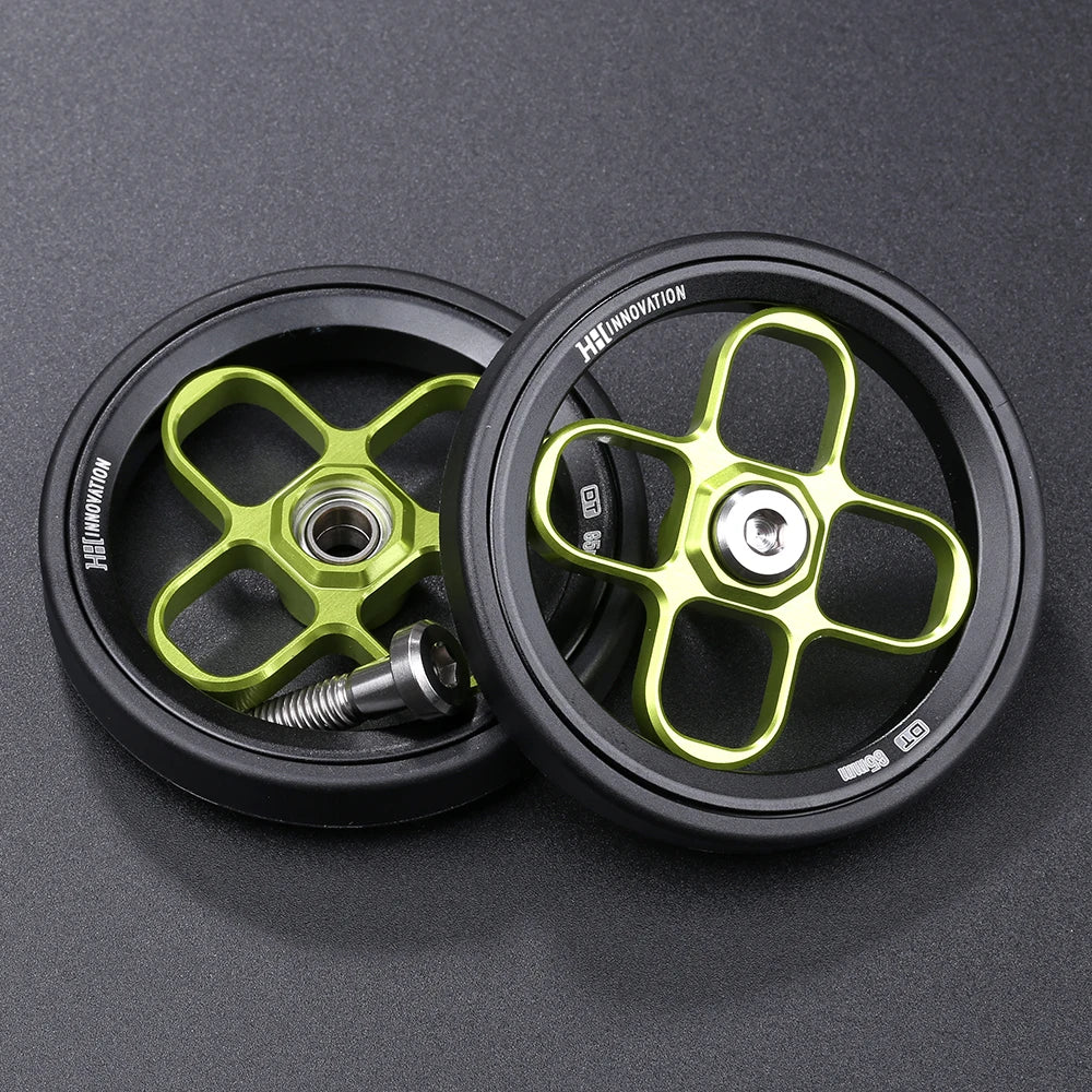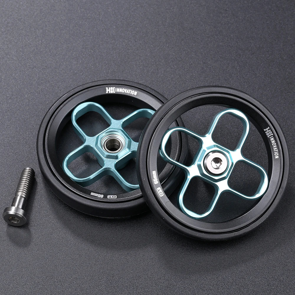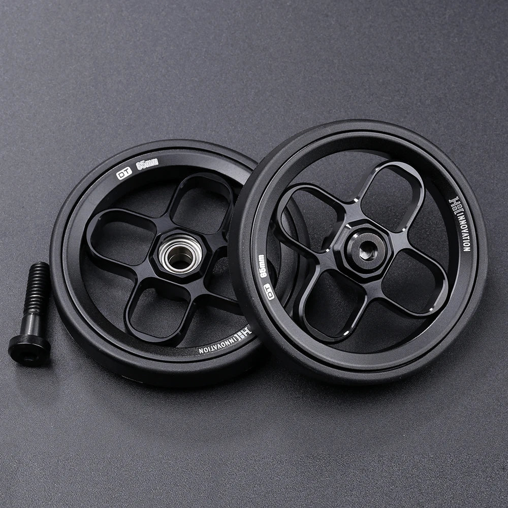 Upgrade your Brompton folding bike with the sleek and stylish HH Innovation EasyWheels. These premium 65mm EasyWheels are part of the DT Two-Color Series, designed for riders who demand both function and aesthetics.