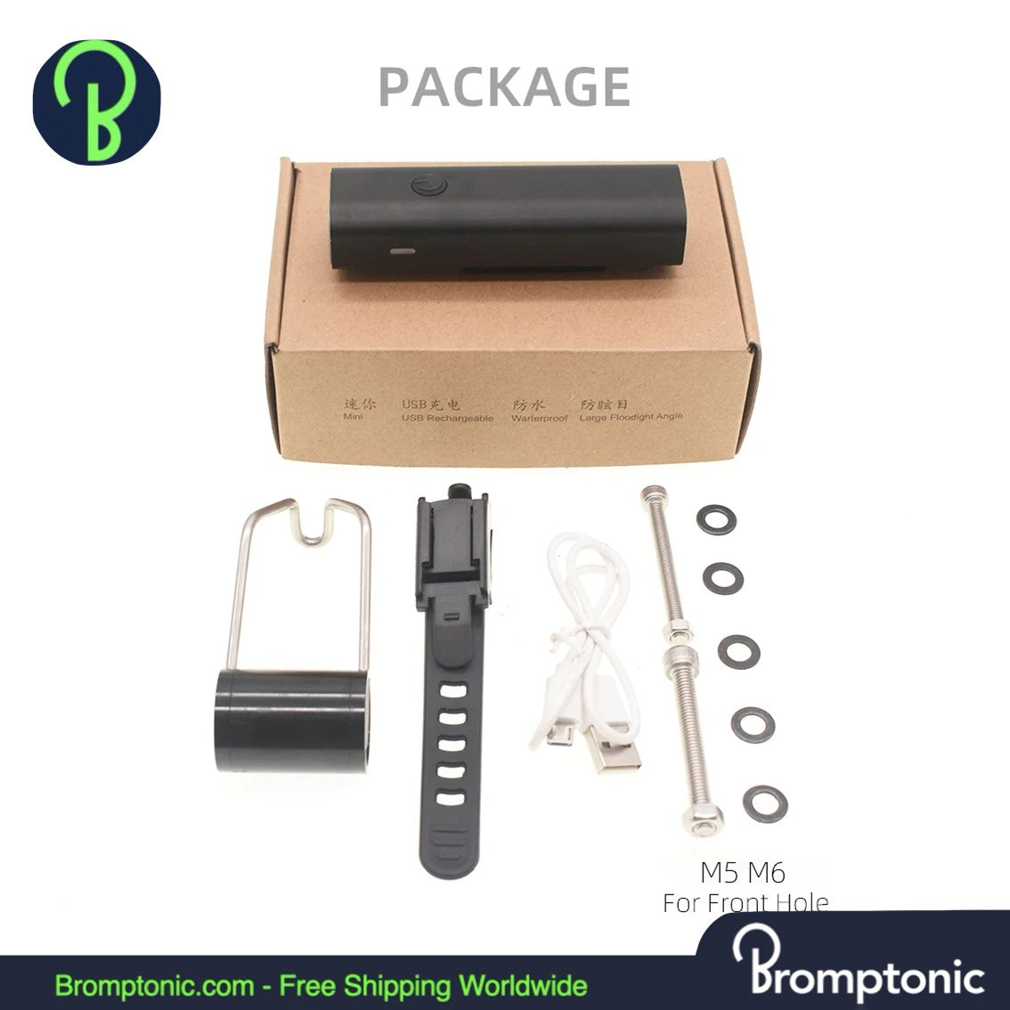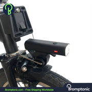 Upgrade your Brompton with this 400 Lumen Folding Bike Light, designed for optimal visibility and safety. Mounted on the front fork, it provides a clear, road-focused beam without blinding others. Built from durable aluminum alloy, it features USB charging, intelligent light sensing, and an adjustable rack angle for a perfect fit.