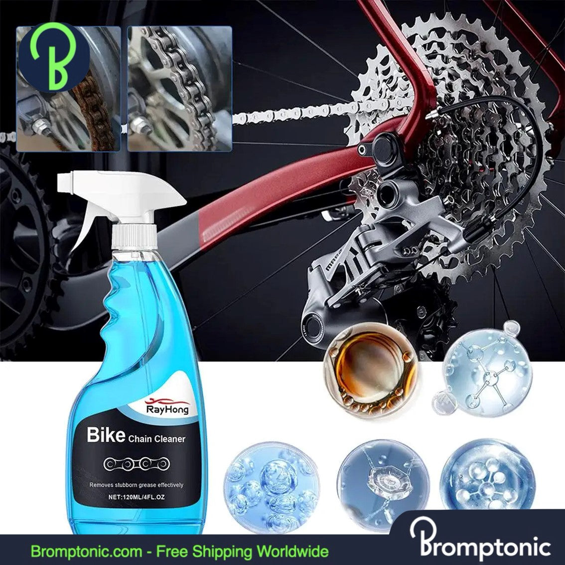 Maintain peak performance with this 120ML Brompton Chain Cleaner Spray — designed to clean, degrease, lubricate, and protect in one easy step. Specially formulated with anti-rust agents and fine lubrication, it quickly removes built-up grime, oil, and debris from your chain and drivetrain components.