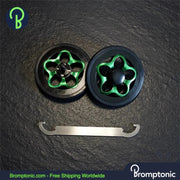 - Premium Design: Eye-catching five-spoke flower-style structure with a sleek black outer rim and anodized aluminum core.