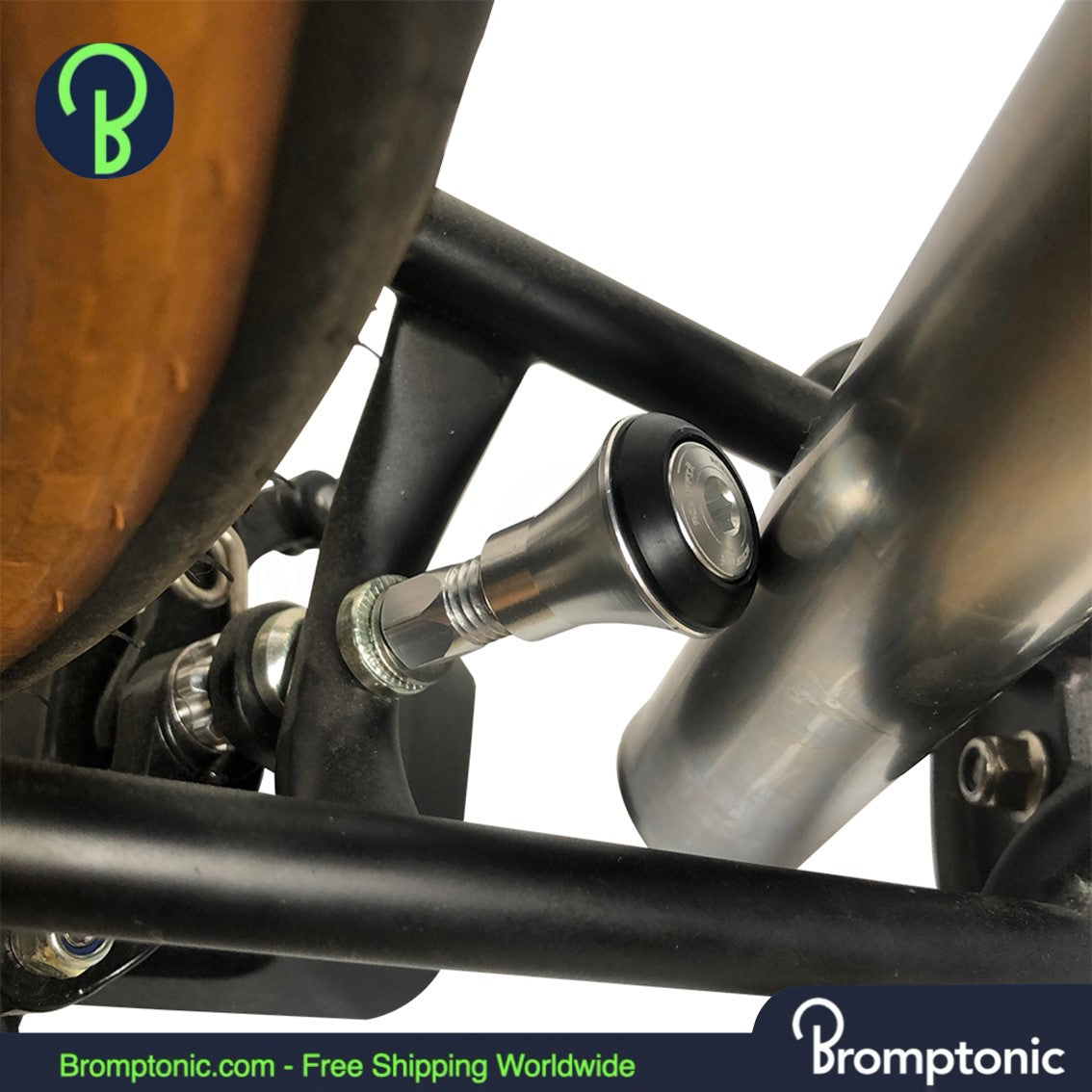 The primary function of the Brompton Seat Tube Head Stopper Block is to provide a secure hold on the bike when it is folded, preventing it from accidentally unfolding or falling apart during storage or transit. Its adjustable length allows you to customize the fit, ensuring a snug and stable setup. The plastic contact surface is designed to protect the seat tube from scratches and wear, preserving the aesthetic and structural integrity of your bike.