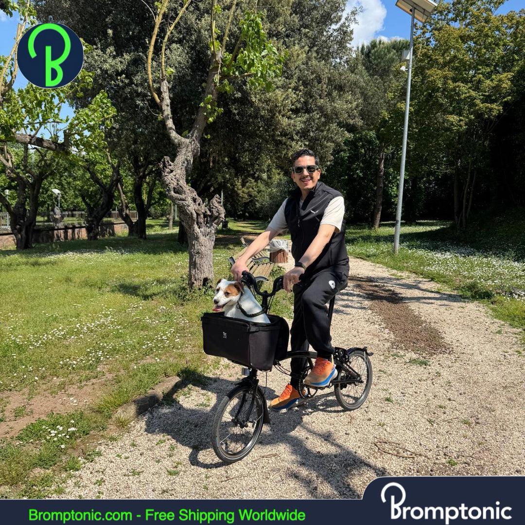 Bring your furry friend along for the ride! This spacious and foldable front basket is designed for Brompton bikes and is ideal for small dogs and cats. Whether you're heading out for a daily ride, weekend adventure, or quick café stop, it’s a practical and comfortable carrier solution.