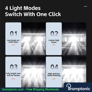 - Múltiples modos de luz: Incluye luz de cruce, luz de carretera central, brillo total y modos intermitentes.