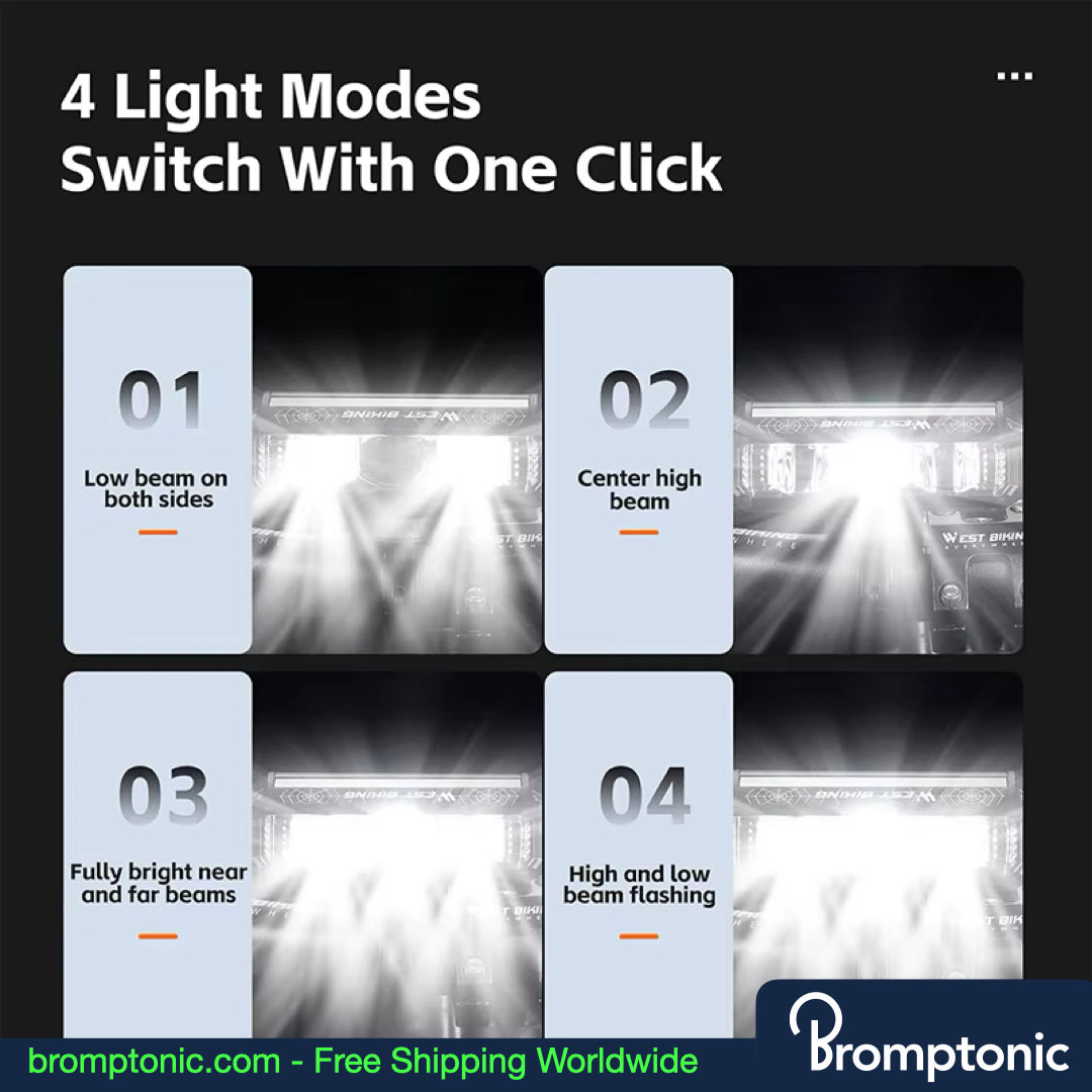 Brompton 1750 Lumens 3-LED Bike Light - Wide-Angle Handlebar Front Light