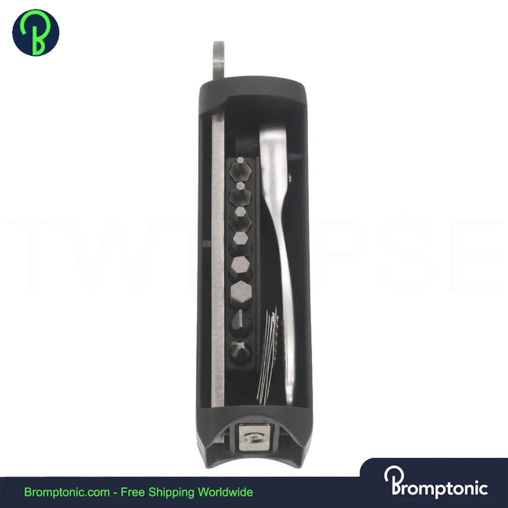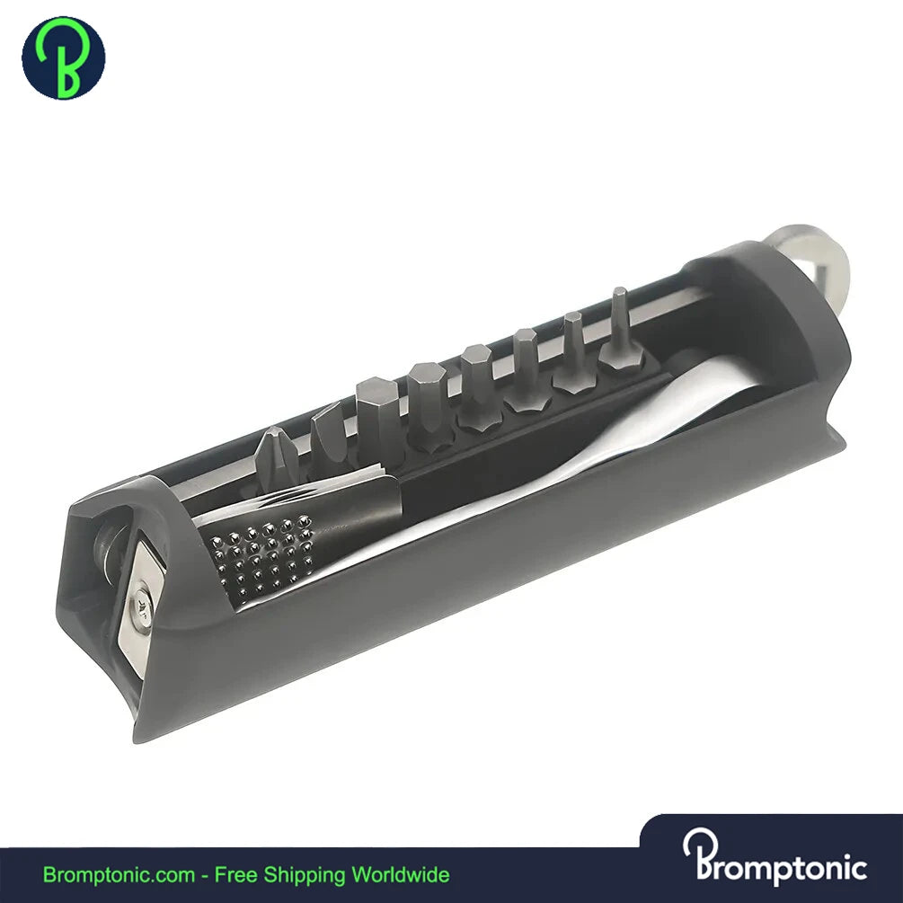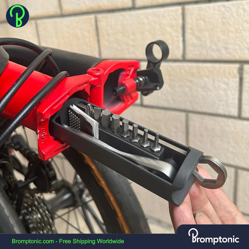 Découvrez la trousse à outils cachée Brompton, un accessoire indispensable pour les cyclistes des gammes A et C de Brompton. Pesant environ 188 g et fabriquée à partir de matériaux durables tels que l'acier, le plastique et l'alliage, cette trousse à outils est un élément indispensable de votre kit de cyclisme, conçu pour une commodité et une fiabilité sans effort.