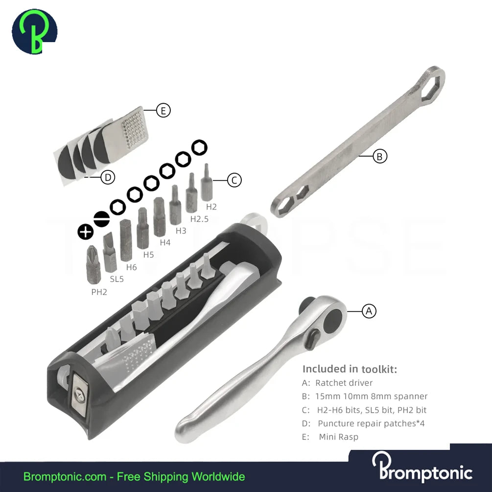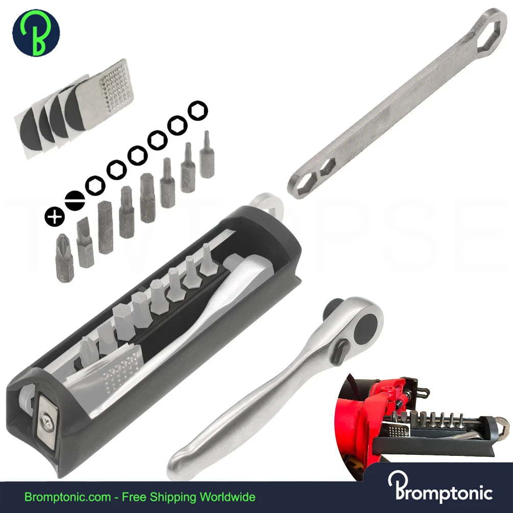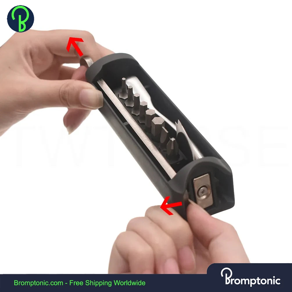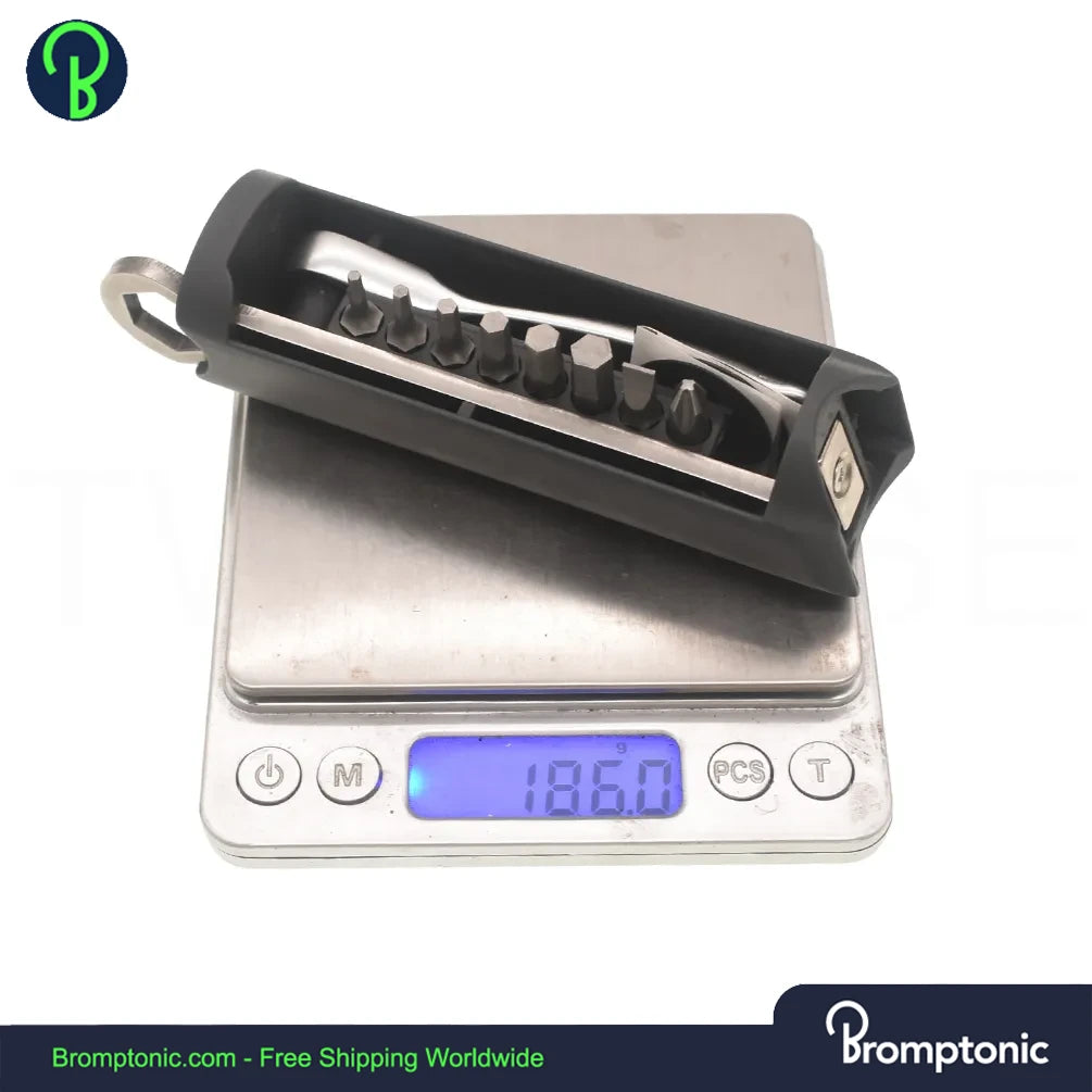 Découvrez la trousse à outils cachée Brompton, un accessoire indispensable pour les cyclistes des gammes A et C de Brompton. Pesant environ 188 g et fabriquée à partir de matériaux durables tels que l'acier, le plastique et l'alliage, cette trousse à outils est un élément indispensable de votre kit de cyclisme, conçu pour une commodité et une fiabilité sans effort.