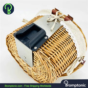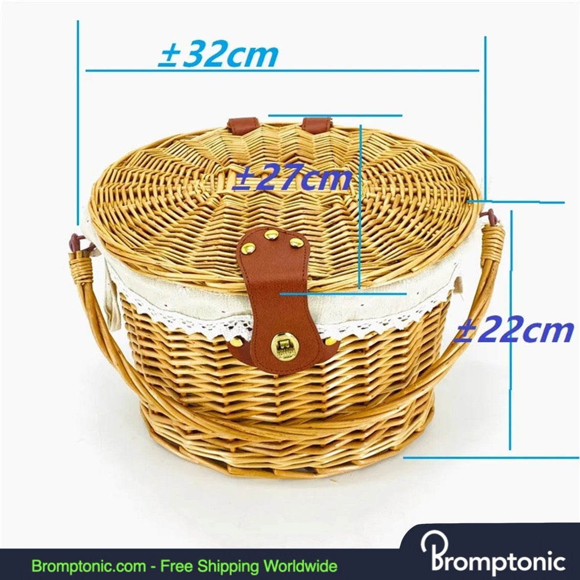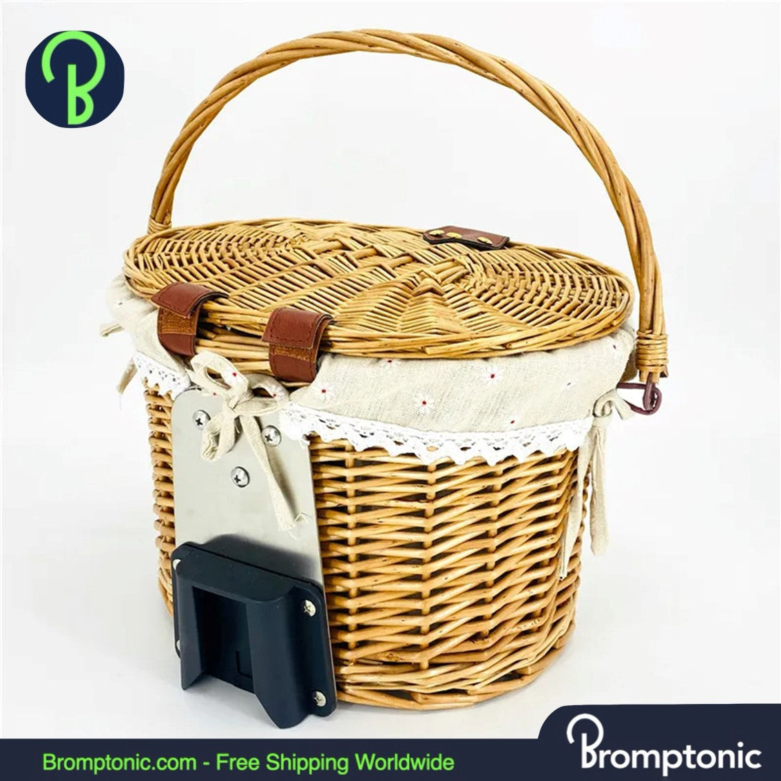 뚜껑이 달린 브롬톤 앞면 위커 바구니 - 빈티지 스타일의 핸드메이드