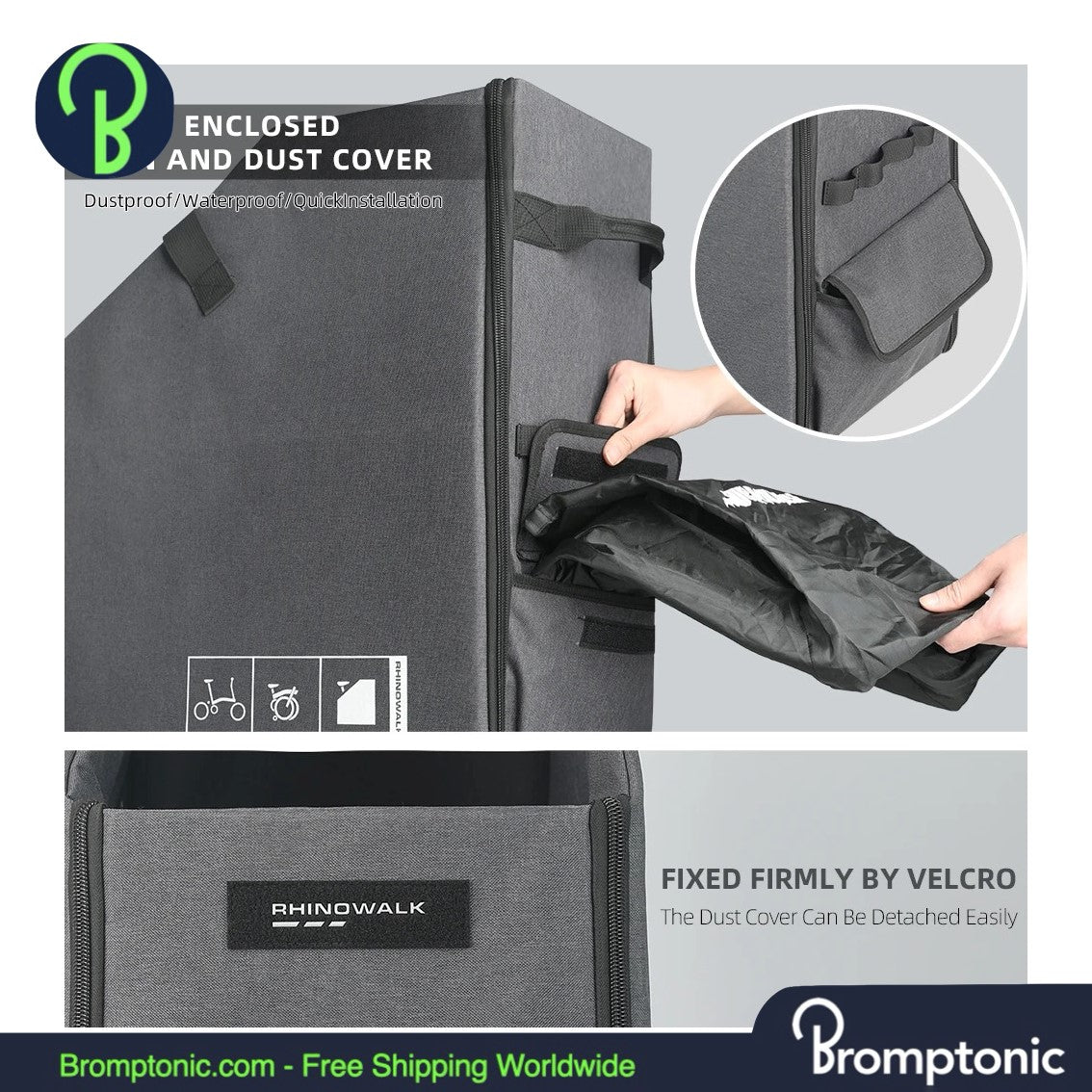Effortlessly transport and protect your Brompton folding bike with the Brompton Folding Bike Storage Box with Quick Release Wheel. Designed for ease and convenience, this compact yet sturdy storage box is perfect for keeping your Brompton safe during transport or storage. Constructed from durable polyester material, it offers full protection against dust, water, and road debris, ensuring your bike remains in pristine condition.